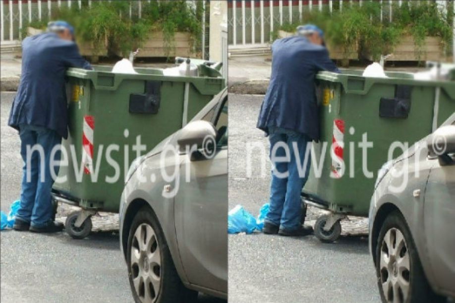 Εικόνες γροθιά στο στομάχι - Ηλικιωμένος ψάχνει να φάει στα σκουπίδια ...
