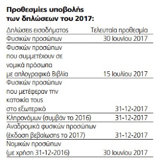 Σημ.: Επειδή 15 Ιουλίου είναι Σάββατο η δήλωση μπορεί να υποβληθεί μέχρι και τη Δευτέρα 17 Ιουλίου 2017 (άρθρο 7 ν. 4174/2013).