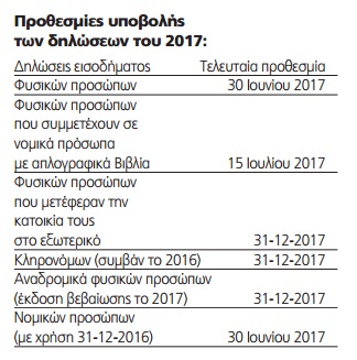 Σημ.: Επειδή 15 Ιουλίου είναι Σάββατο η δήλωση μπορεί να υποβληθεί μέχρι και τη Δευτέρα 17 Ιουλίου 2017 (άρθρο 7 ν. 4174/2013).