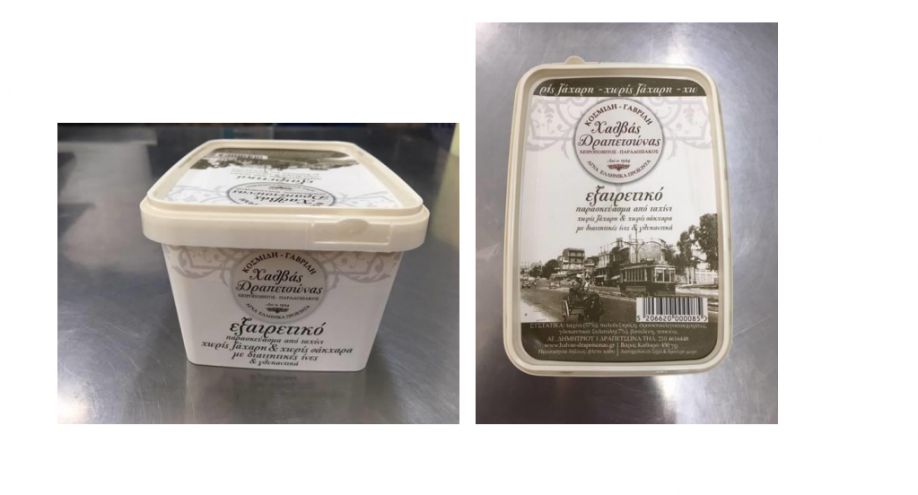 Πρόκειται για το προϊόν με την εμπορική ονομασία «Εξαιρετικό παρασκεύασμα από ταχίνι χωρίς ζάχαρη και χωρίς σάκχαρα με διαιτητικές ίνες και γλυκαντικά», σε συσκευασία 450g, με αριθμό παρτίδας LOT 10014480 και ημερομηνία λήξης 30.12.2018, που παρασκευάζεται από την εταιρεία «Κοσμίδη – Γαβρίλη Χαλβάς Δραπετσώνας», Αγίου Δημητρίου 7 – 9, Δραπετσώνα, Πειραιάς.