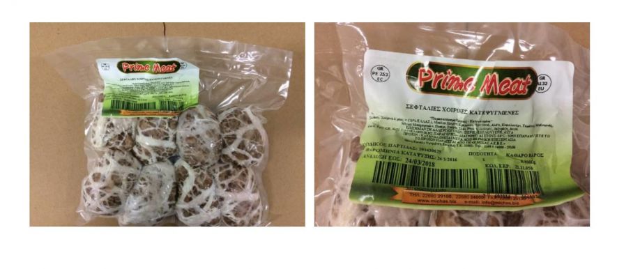 Πρόκειται για το προϊόν με την εμπορική ονομασία «prime meat – σεφταλιές χοιρινές κατεψυγμένες», βάρους 640g, με ημερομηνία παρασκευής 24-03-2017, παρτίδα LOT 201620625, ημερομηνία λήξης 24-03-2018, το οποίο παράγεται από την εταιρεία «Χ. ΜΙΧΑΣ ΑΕΒΕ», που εδρεύει στον Υψηλάντη Βοιωτίας.