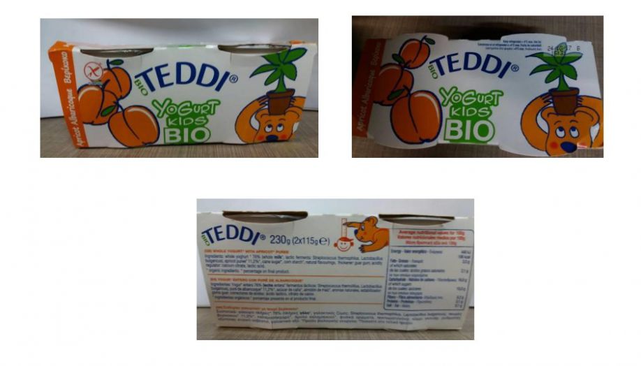 Πρόκειται για το παιδικό επιδόρπιο γιαουρτιού με βερίκοκο με την εμπορική ονομασία “Teddi Yogurt Kids Bio”, σε χάρτινη συσκευασία των 230 g που περιλαμβάνει 2 τεμάχια των 115 g έκαστο, με αριθμό παρτίδας L.171024 και ημερομηνία λήξης 24.10.2017, το οποίο παρασκευάστηκε από την Ιταλική εταιρεία “Fattoria Scaldasole srl” και διακινήθηκε στην Ελλάδα από την επιχείρηση “Αγροτική Βιοδιατροφική Α.Ε.” (Αγίας Άννης 6Α , Άγ. Ιωάννης Ρέντης).