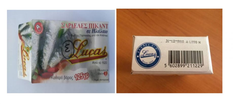 Ο Ε.Φ.Ε.Τ. και συγκεκριμένα η Περιφερειακή Διεύθυνση Αττικής, κατά τη διενέργεια ελέγχων και σε συνεργασία με τη Χημική Υπηρεσία Πειραιά – Τμήμα Α΄, διαπίστωσε ότι το προϊόν με την εμπορική επωνυμία «Lucas σαρδέλες πικάντικες σε ηλιέλαιο», προέλευσης Πορτογαλίας, καθαρού βάρους 125g, με ανάλωση κατά προτίμηση πριν από 31/12/2018 και αριθμό παρτίδας ΑL098H, το οποίο εισάγεται από την εταιρεία «Provinco A.E.» που βρίσκεται στη Ν. Κηφισιά, περιείχε την βιοτοξίνη ισταμίνη, σε τιμή που υπερέβαινε το ανώτατο όριο.