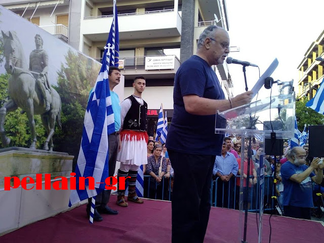 Οι ομιλητές (Μητροπολίτης κκ Ιωήλ, δήμαρχος Πέλλας Γρ.Στάμκος και Αντιπρόεδρος Κ.Μακ. ΠΟΠΣΜ Γιώργος Δόντσιος) σύντομοι στις τοποθετήσεις τους εστίασαν με το λόγο τους σε βάθος και με σαφήνεια τη θέληση του λαού και τις προθέσεις του να διαμαρτυρηθεί ειρηνικά για τα δικαιώματα του και εξέφρασαν την πρόθεση του να αγωνιστεί για την πατρίδα και την πίστη του.