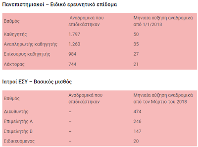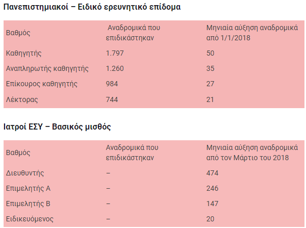 Αυτά είναι τα αναδρομικά και οι αυξήσεις στα ειδικά μισθολόγια (πίνακες)