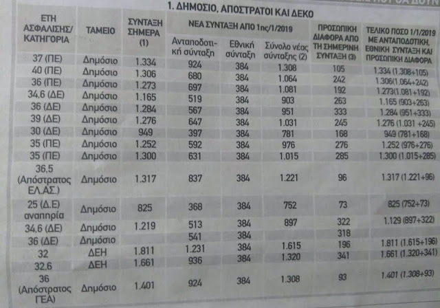 Τα νέα ποσά που θα δουν οι συνταξιούχοι αποκαλύπτει η εφημερίδα «Ελεύθερος Τύπος», δημοσιεύοντας δύο ενδεικτικούς πίνακες από το αρχείο συνταξιούχων Δημοσίου, ΙΚΑ και ΔΕΚΟ, με τις προσωπικές διαφορές που περάστηκαν στις συντάξεις.
