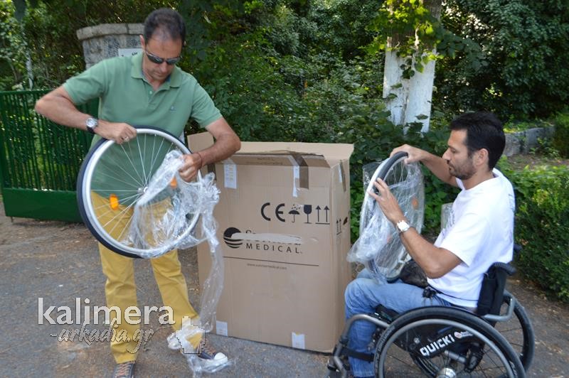 Παρακολουθήστε, βήμα προς βήμα, τη συγκινητική παράδοση αναπηρικού αμαξιδίου στον Γιώργο, από τον Πρόεδρο του Συλλόγου ΑμεΑ Αρκαδίας, Τάκη Παρασκευόπουλο και τον γραμματέα του Συλλόγου, Άρη Καρνέζη.