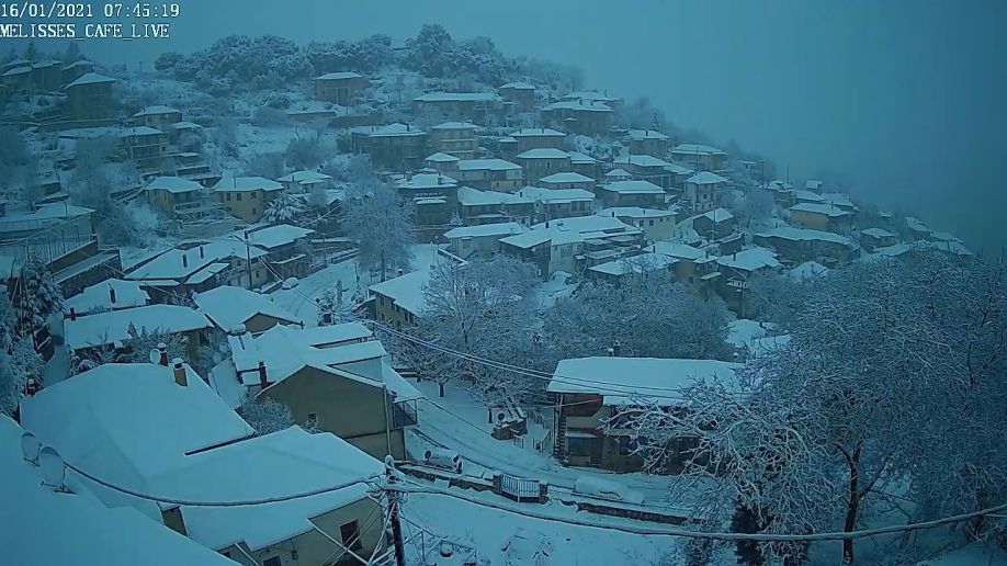 Χειμωνιάτικο τοπίο σήμερα στο Βαλτεσινίκο με χιόνια στο χωριό.