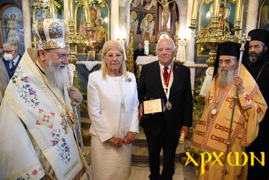 Ακολούθως, με εντολή του Μητροπολίτη Γόρτυνος ο Μητροπολίτης Κορίνθου απένειμε τιμητική διάκριση στους εντιμωτάτους Ελένη και Σούλη Κωνσταντόπουλο και Τάκη Λάμπρου για την προσφορά τους. Στη συνέχεια η τοπική Εκκλησία προσέφερε στους Ηγουμένους των Ιερών Μονών του Αγίου Όρους Ξενοφώντος Αρχιμ. Αλέξιο και Παντοκράτορος Αρχιμ. Γαβριήλ επιστήθιους σταυρούς για την παρουσία τους στον εορτασμό.