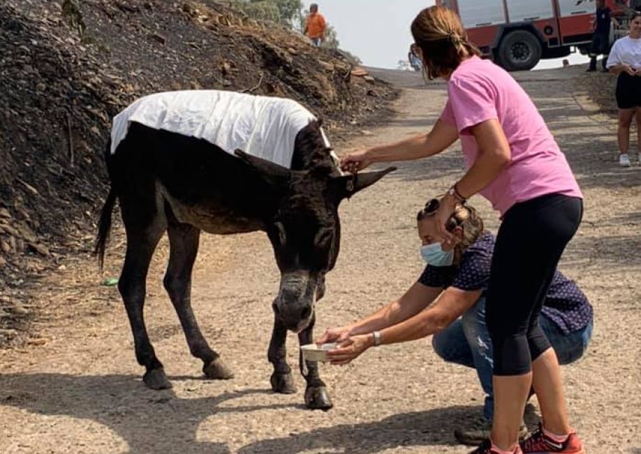 Στις φωτιές της Γορτυνίας και συγκεκριμένα στο χωριό Πυρρί ένα γαϊδουράκι εντοπίστηκε με πολλά εγκαύματα στο σώμα του.