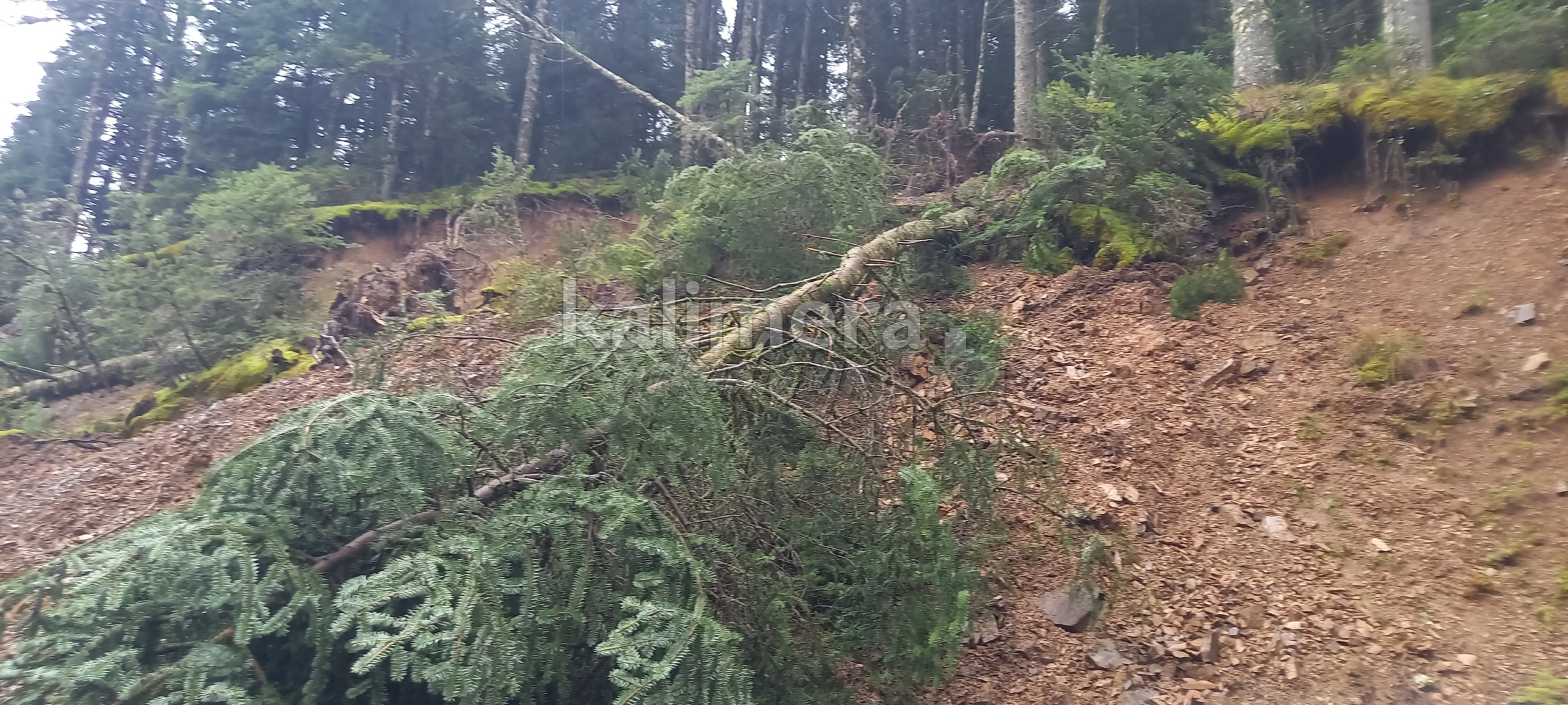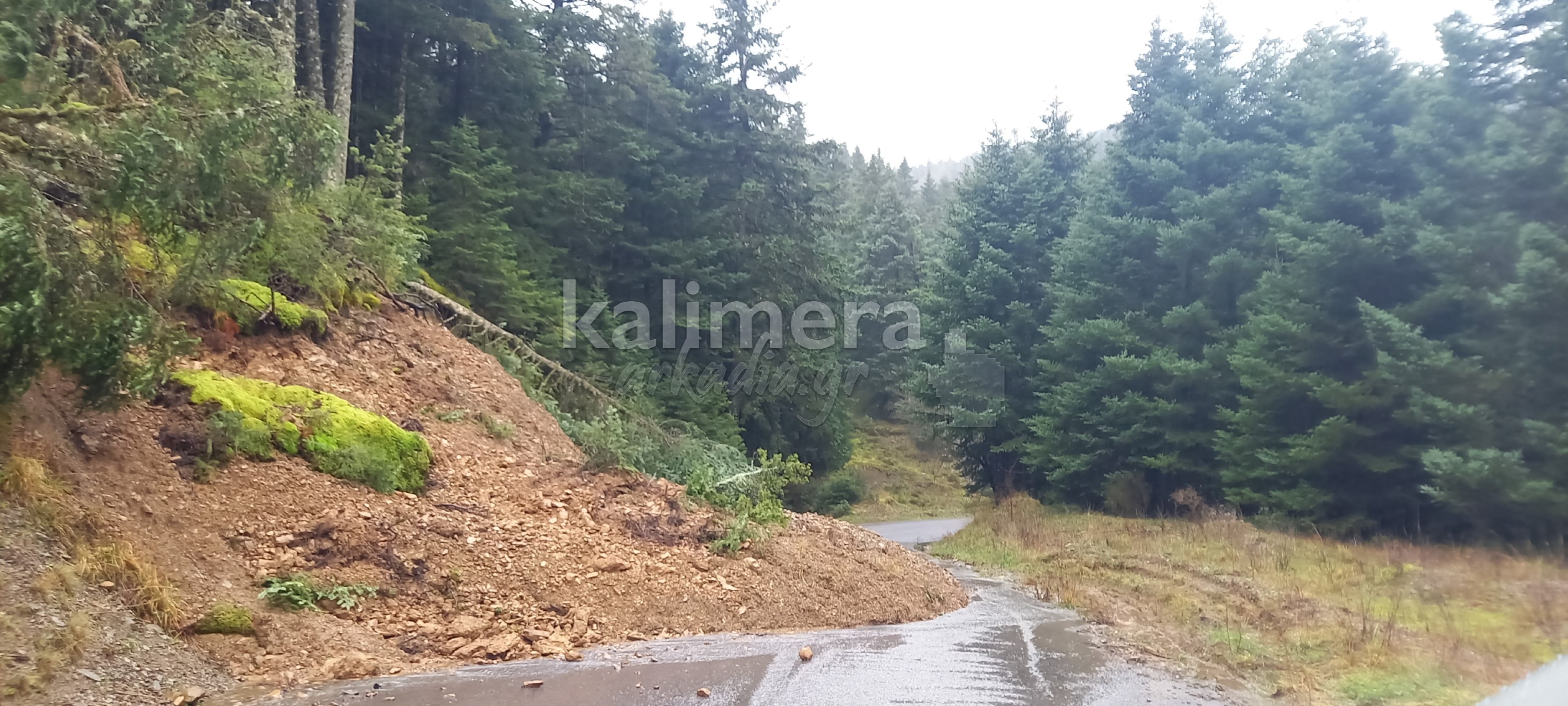 Στο εν λόγω σημείο έπεσαν πολλά χώματα αλλά και κορμοί δένδρων πάνω στο δρόμο.