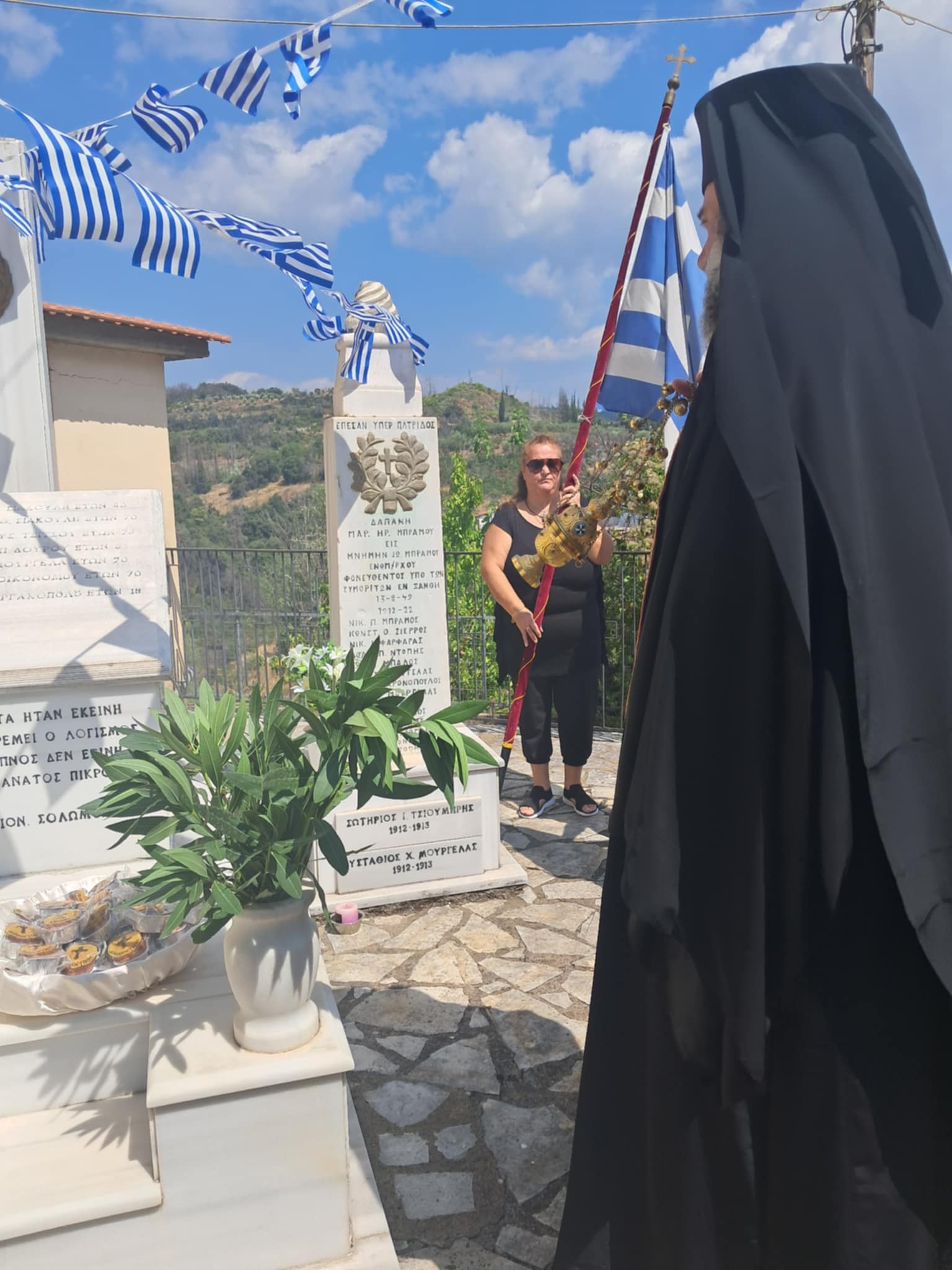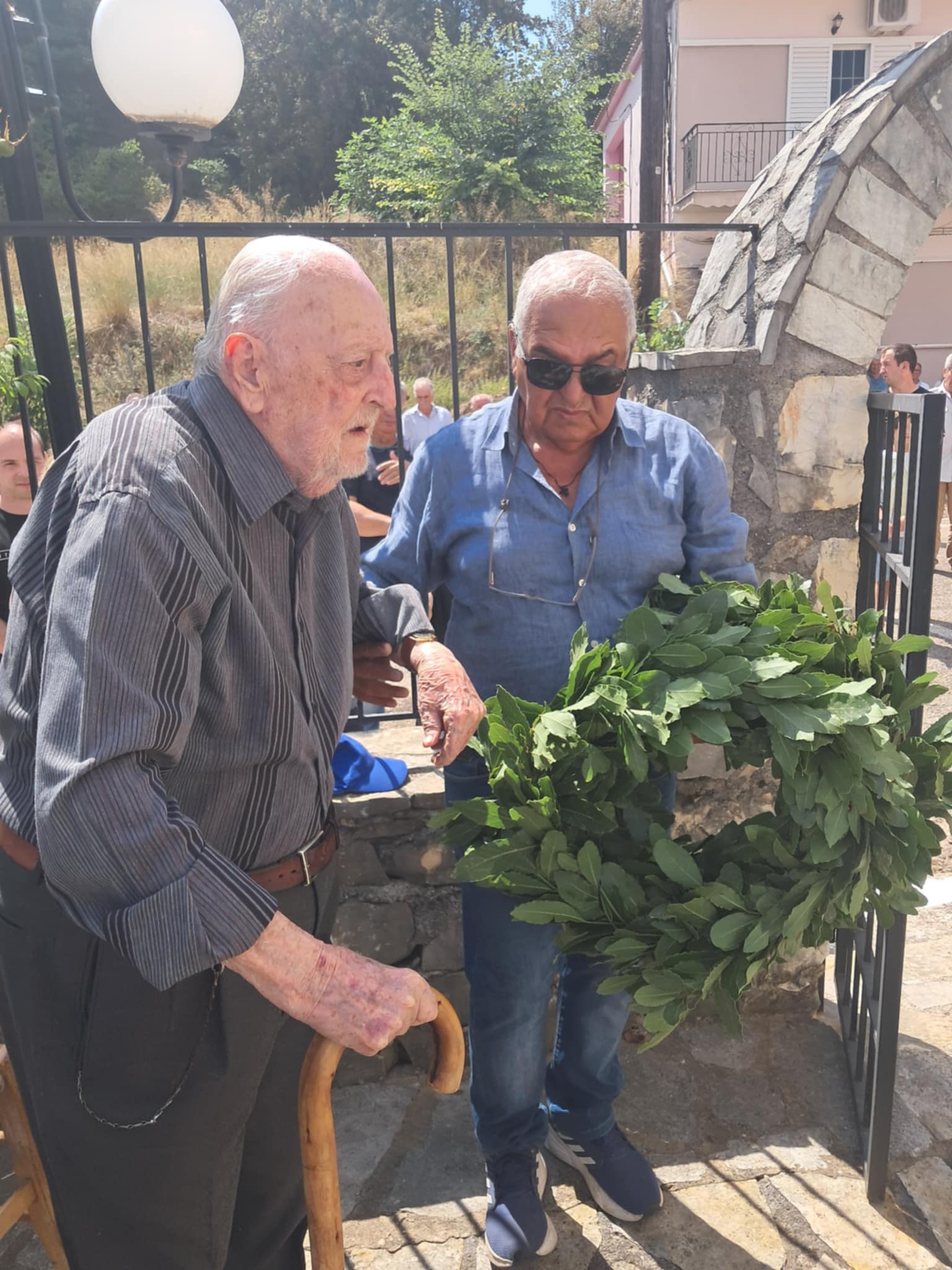 Ιδιαίτερα συγκινητική ήταν η στιγμή της κατάθεσης στεφάνου από τον κύριο Ιωάννη Μπάλλο, επιζώντα μάρτυρα της θηριωδίας κατά την οποία εκτελέστηκε η μητέρα του, την 23 Αυγούστου 1943, όταν οι Γερμανοί ναζιστές συγκέντρωσαν όλους τους κατοίκους του χωριού μέσα στον Ιερό Ναό του Αγίου Αθανασίου και στήνοντας τα πολυβόλα στην είσοδό του άρχισαν να πυροβολούν, εκτελώντας εν ψυχρώ ένδεκα (11) άτομα, και τραυματίζοντας πολλούς άλλους.
