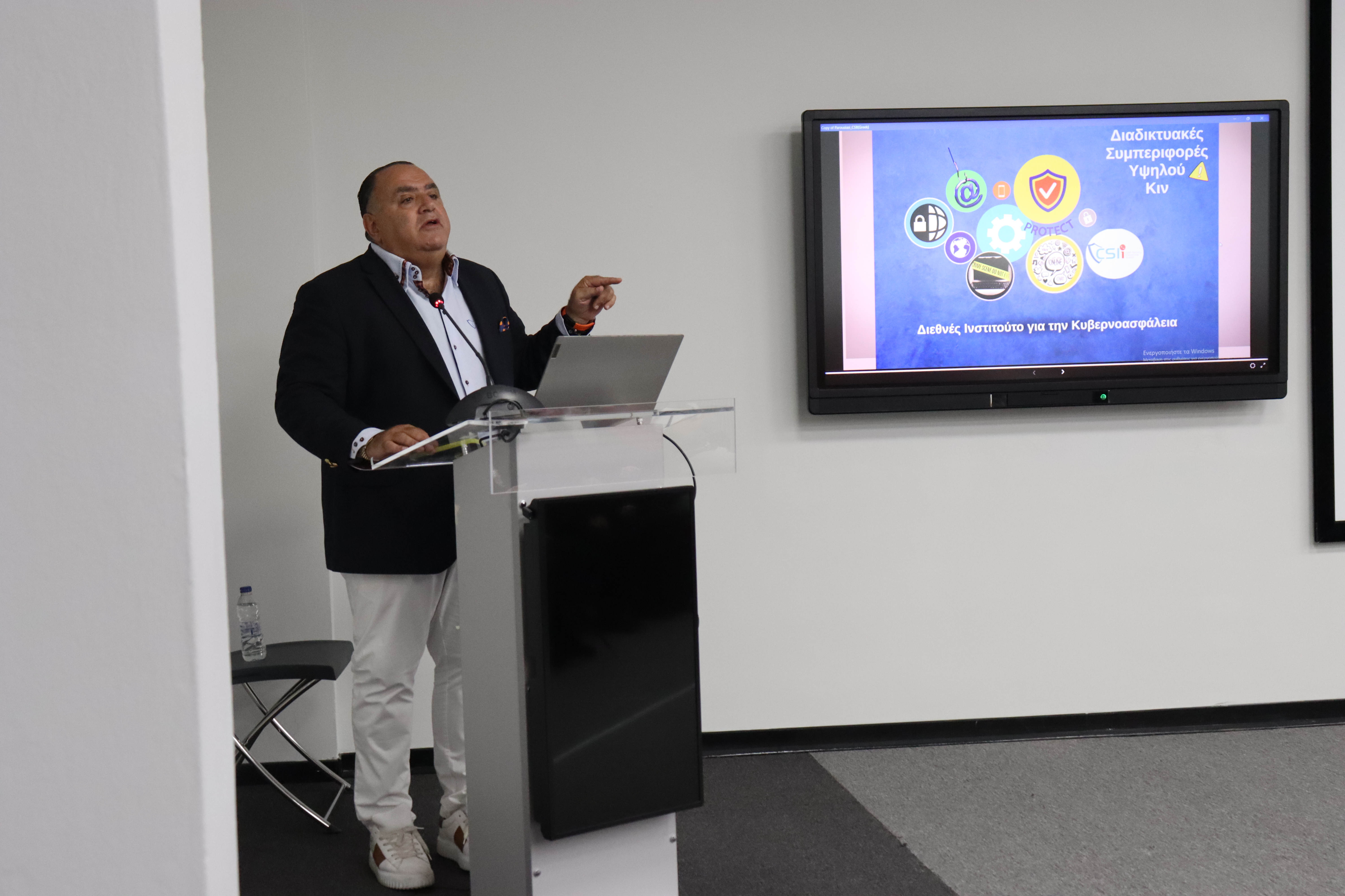Κεντρικός ομιλητής ήταν ο κ. Μανώλης Σφακιανάκης, ιδρυτής του CSI Institute και πρώην επικεφαλής της Διώξεως Ηλεκτρονικού Εγκλήματος, ο οποίος, μαζί με το εξειδικευμένο επιτελείό του, παρουσίασαν με σαφήνεια και παραστατικά παραδείγματα τους κινδύνους που ελλοχεύουν στον ψηφιακό κόσμο: διαδικτυακές απάτες, κυβερνοεκφοβισμό, εθισμό, παραβίαση προσωπικών δεδομένων, καθώς και τις μεθόδους πρόληψης και προστασίας.