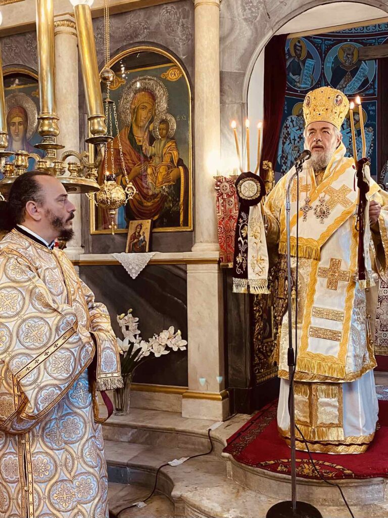 Στο κήρυγμά του, ο Σεβασμιώτατος ανέπτυξε το βαθύ θεολογικό νόημα της Αναστάσεως, τονίζοντας ότι η νίκη του Χριστού επί του θανάτου αποτελεί πηγή ελπίδος και ζωής για κάθε άνθρωπο. Παράλληλα, αναφέρθηκε στη μορφή και το μαρτύριο του Αγίου Γρηγορίου του Ε΄, υπογραμμίζοντας ότι η θυσία του αποτελεί ζωντανή μαρτυρία πίστεως και αυταπάρνησης.