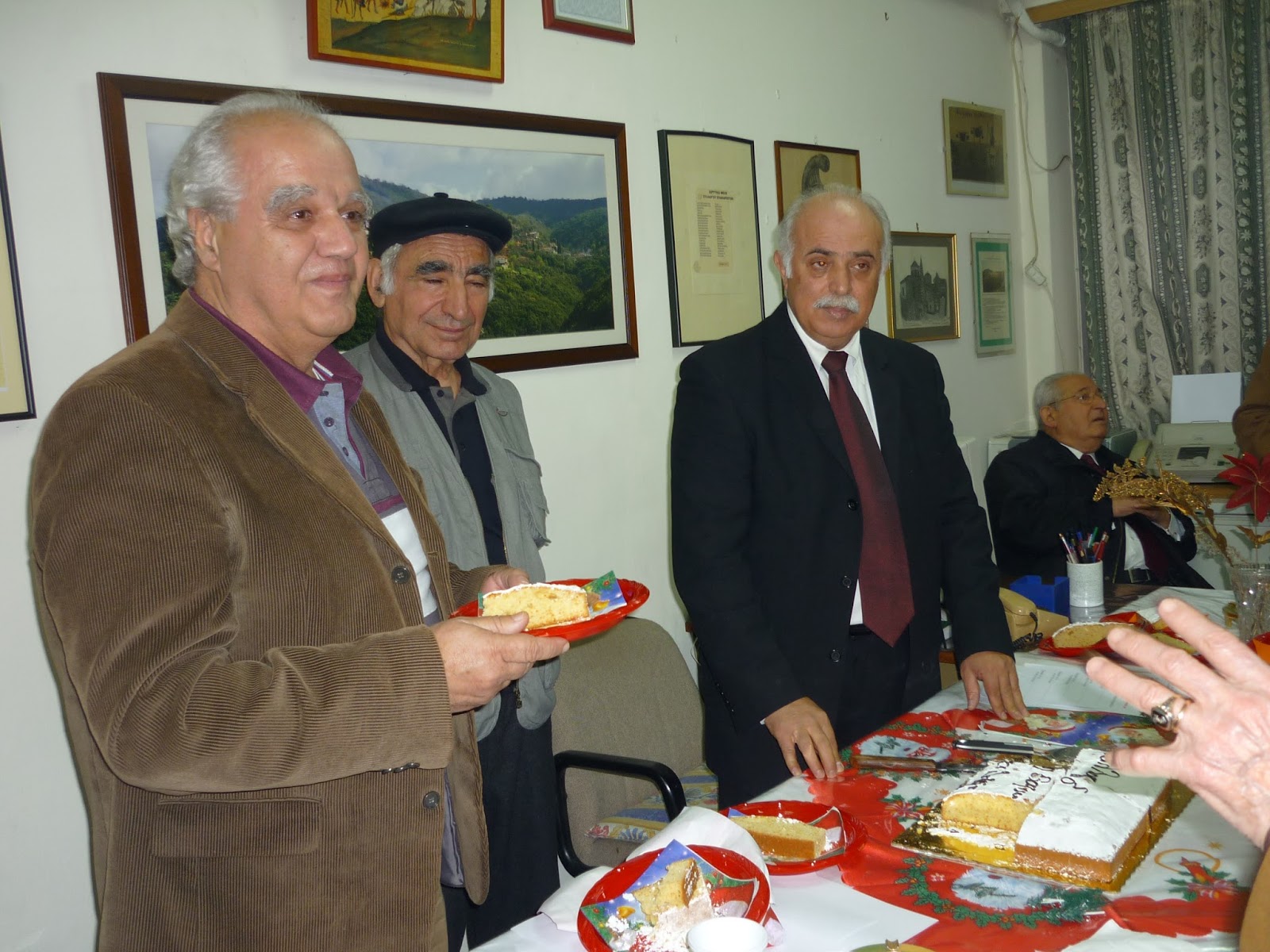 Μοιράστηκαν σε όλες και όλους διπλωμένα κομμάτια Βασιλόπιτας όπου σε ένα απ' αυτά θα υπάρχει το νόμισμα και ο/η τυχερός θα έχει δυο προσκλήσεις για τον ετήσιο χορό του Συλλόγου.