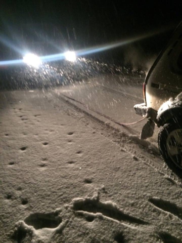 Γορτυνία – Δύσκολη ρυμούλκηση εγκλωβισμένου αυτοκινήτου μέσα στο χιόνι! (εικόνες)