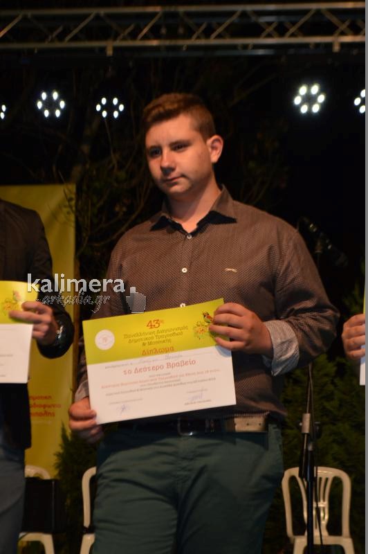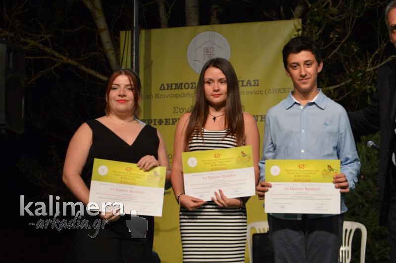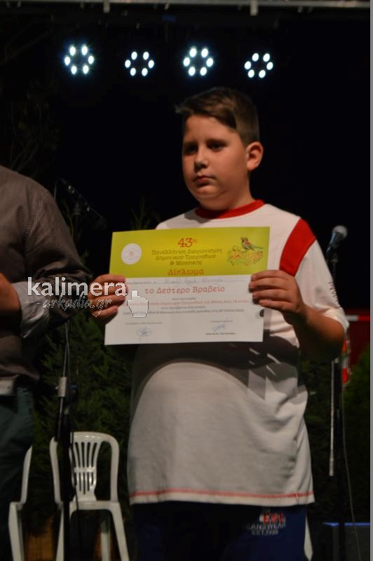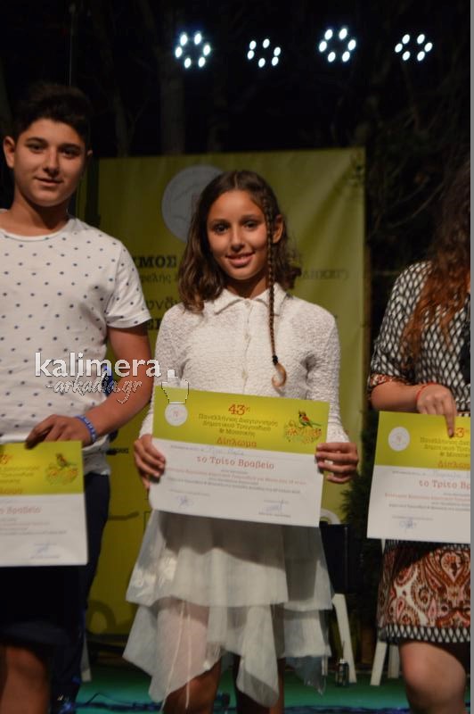 1. Καλύτερης ερμηνείας δημοτικού τραγουδιού για νέους έως 18 ετών.