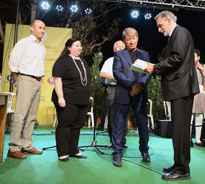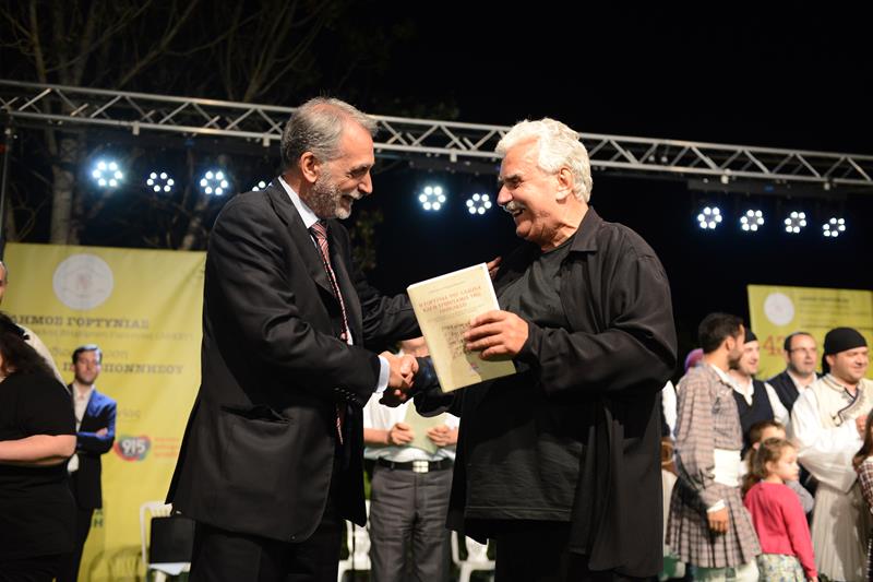 Στο τέλος της βραδιάς ο Δήμαρχος Γορτυνίας κ. Γιάννης Γιαννόπουλος τίμησε τους υψηλούς προσκεκλημένους και τους συντελεστές, προσφέροντας βιβλία γορτυνίων συγγραφέων και αναμνηστικά για την παρουσία τους και την συμμετοχή τους στην εκδήλωση.