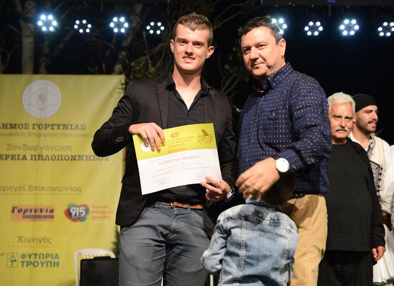 Το δεύτερο βραβείο απέσπασε ο Σταμάτης Γυφτάκης από την Κυπαρισσία, στο κλαρίνο.