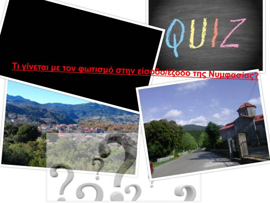 Ο Σύλλογος Νυμφασίας 'Η Αγία Τριάς' ανάρτησε το παρακάτω κείμενο στο facebook και ζητά απαντήσεις .. "Σε ερώτηση επισκέπτη του χωριού μας, γιατί η είσοδος δεν φωτίζεται καθιστώντας άκρως επικίνδυνη την διασταύρωση, εμείς δεν έχουμε απάντηση.