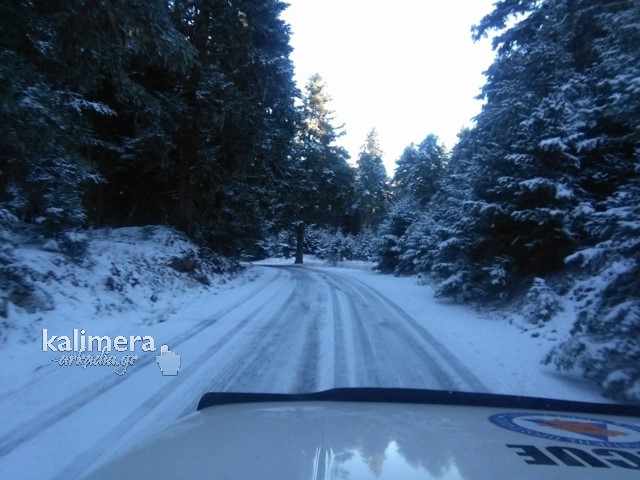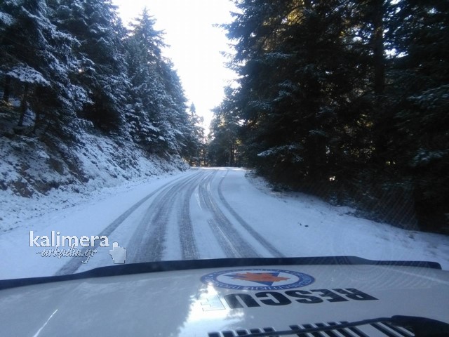 Μια μέρα μετά τον χιονιά που πέρασε από την Αρκαδία, πολλοί δρόμοι στην ορεινή Αρκαδία, ήταν παγωμένοι και γλιστεροί. Το χιόνι πάγωσε και δημιούργησε δυσκολίες σε κάποιους δρόμους, όπως σε εκείνον από την Βυτίνα προς το Χιονοδρομικό Κέντρο του Μαινάλου.