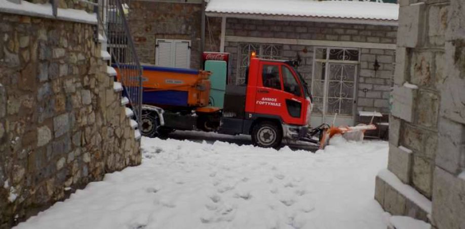 Ο Δήμος Γορτυνίας με το προσωπικό του, της πολιτικής προστασίας, εργάζεται πυρετωδώς από την νύκτα για να κρατήσει ανοικτούς όλους τους δρόμους στα χωριά του Δήμου, ενώ η χιονόπτωση συνεχίζεται κατά διαστήματα.