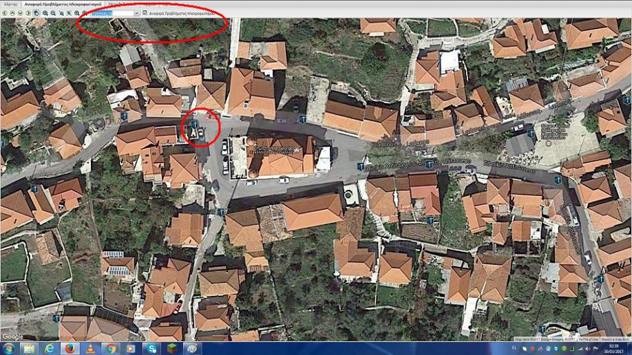 Από το αναπτυσσόμενο μενού υπάρχει η δυνατότητα άμεσης μετάβασης στον οικισμό (εικόνα 1). Με «κλικ» στην φράση «Αναφορά προβλήματος ηλεκτροφωτισμού» και μετά επιλογή με «κλικ» του στύλου ηλεκτροφωτισμού εμφανίζεται η φόρμα υποβολής του προβλήματος, όπου υπάρχει χώρος για περιγραφή του προβλήματος (εικόνα 2). Αν στο σημείο που εντοπίσατε δέν υπάρχει το σύμβολο του στύλου, τότε ενημερώνεται το σύστημα ότι στο σημείο αυτό υπάρχει κολώνα φωτισμού που δεν είναι καταγραμμένη.
