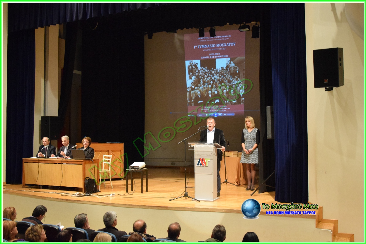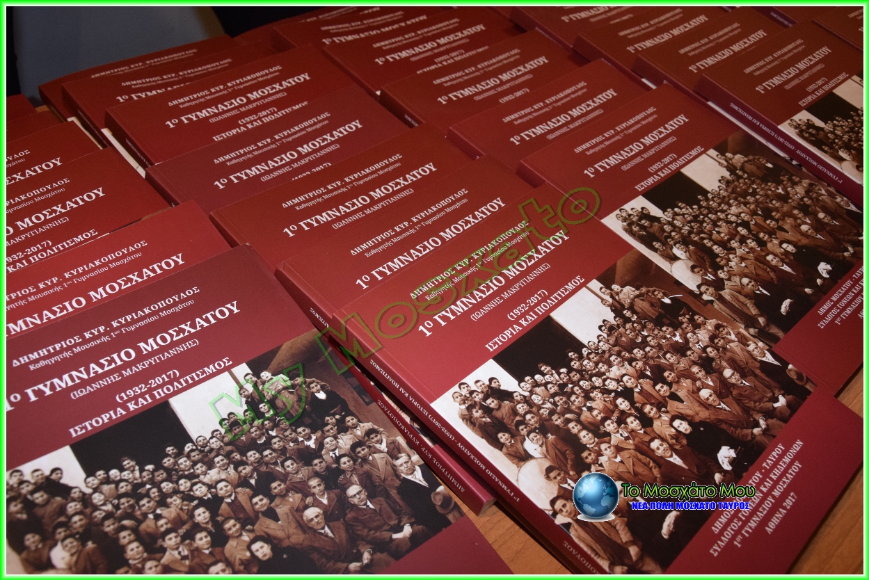 Την Κυριακή 26-11-2017 πραγματοποιήθηκε στο Πολιτιστικό Κέντρο «Θ. Αγγελόπουλος» του δήμου Μοσχάτου-Ταύρου εκδήλωση – παρουσίαση του Λευκώματος «1ο Γυμνάσιο Μοσχάτου (1932-2017) – Ιστορία και Πολιτισμός» του Καθηγητή Δημήτρη Κυριακόπουλου.