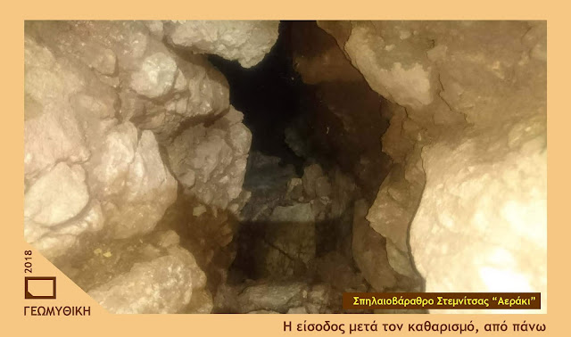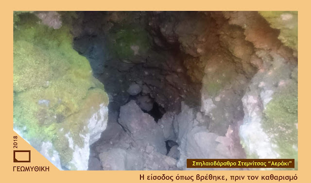 Η είσοδος, όπως φαίνεται και στην προηγούμενη εικόνα ήταν φραγμένη με πέτρες και ογκόλιθους. Από το κενό που είχε μείνει, μπορούσε να χωρέσει άνθρωπος, ωστόσο η ομάδα έκρινε ότι για την ασφάλεια μας έπρεπε να την καθαρίσουμε από όλες τις πέτρες και τα σαθρά υλικά που υπήρχαν εκεί. Όπως και κάναμε.