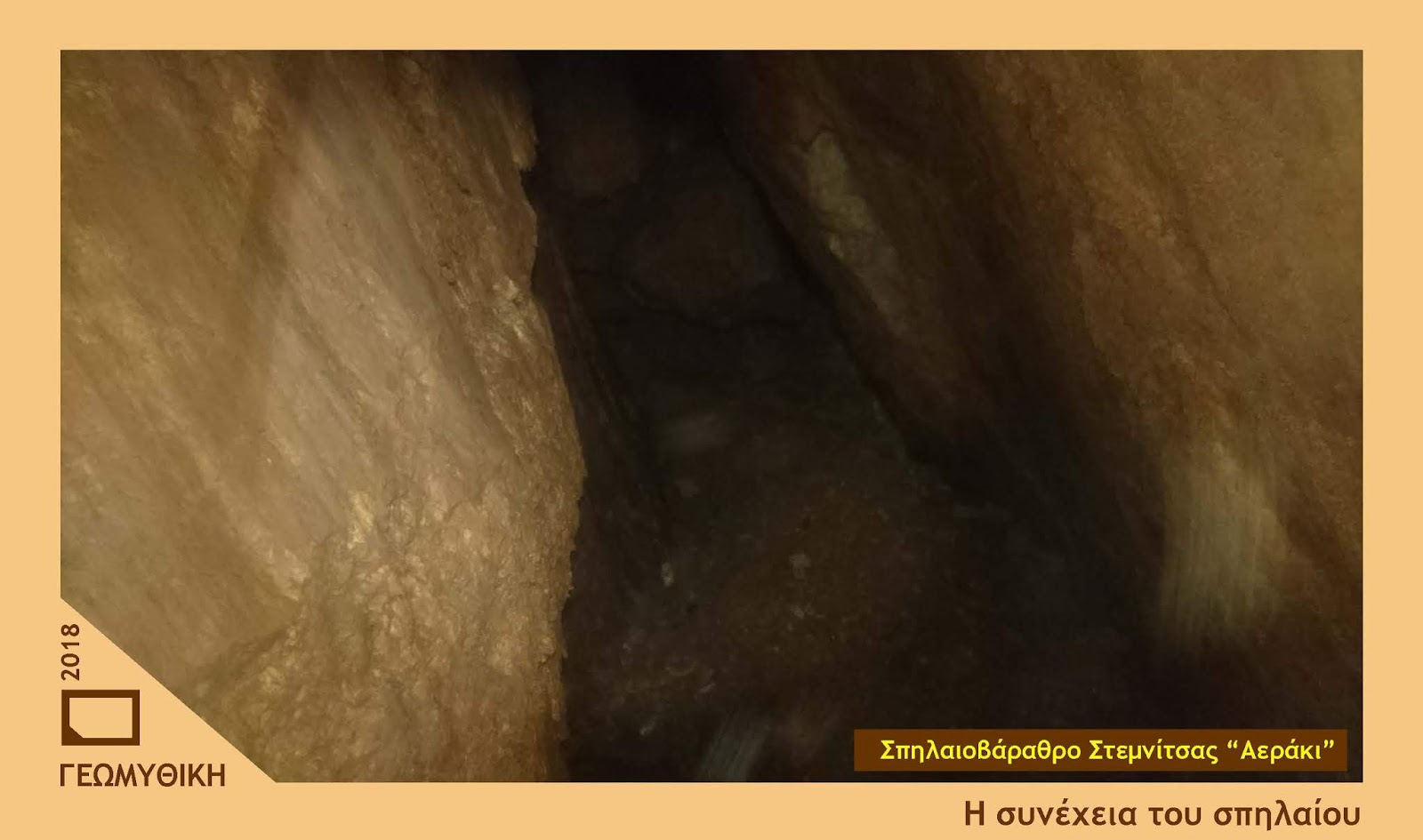 Πέρα από την συνέχεια του σπηλαίου προς την ασβεστολιθική πλάκα, υπήρχε και μια δεύτερη συνέχεια, η οποία λόγω στένωσης δεν μπορούσε να εξερευνηθεί. Παρόλαυτα φαινόταν καθαρά ότι το σπήλαιο συνεχιζόταν βόρεια και βόρειοδυτικά.