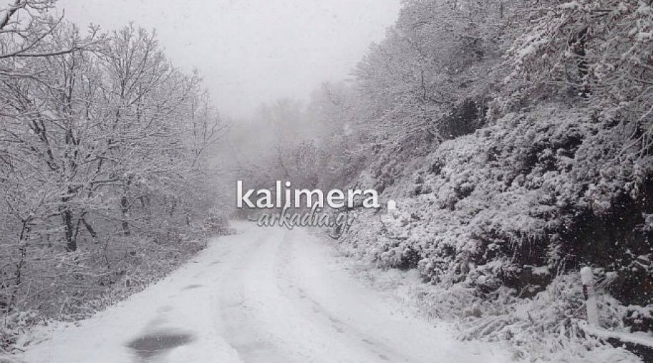 Δεν πρόλαβε να λιώσουν τα πρώτα χιόνια και το έστρωσε ξανά στο χωριό Βάστα Μεγαλόπολης, σε υψόμετρο 850 μέτρων.