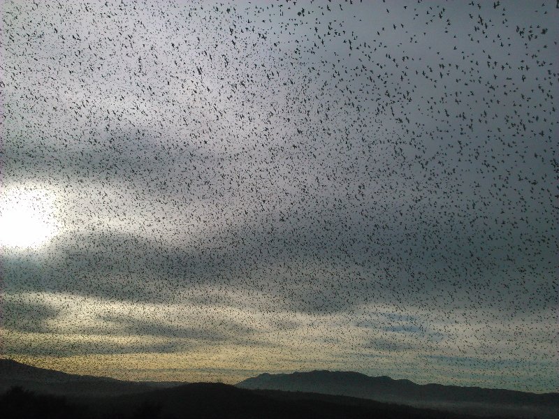 Σμήνος από χιλιάδες μαυροπούλια έκανε την εμφάνισή του στον ουρανό αλλά δεν προσπέρασε. Κατέβηκε και ξαπόστασε στα ελαιοχώραφά μας, λίγα μόλις μέτρα μακριά από ανθρώπους και μηχανήματα.