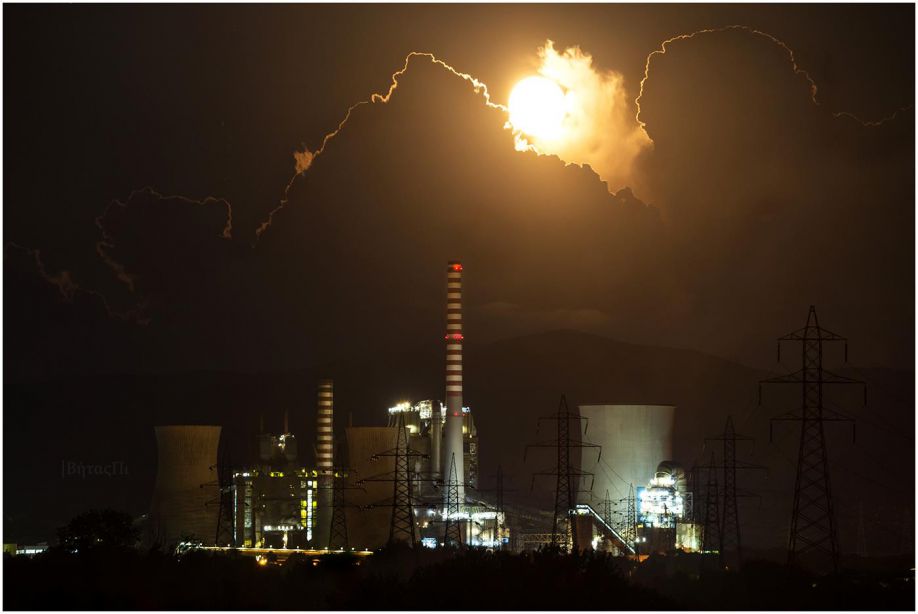 Καταπληκτική φωτογραφία του Β. Πηλιχού από τη ... βιομηχανική πανσέληνο στη Μεγαλόπολη!