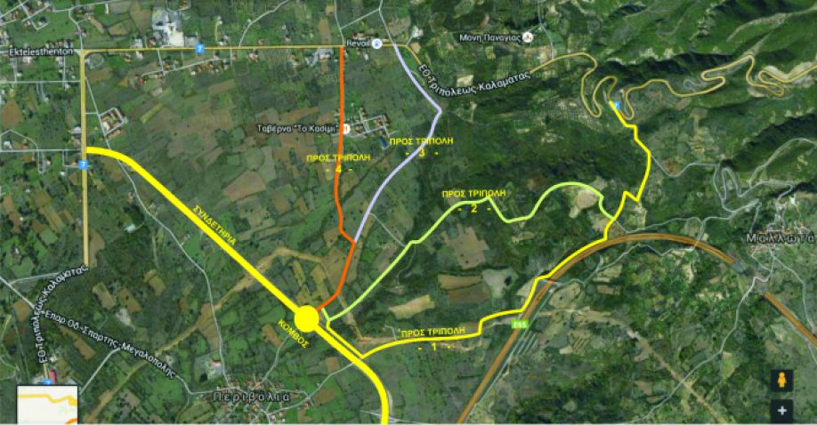 Το ευτράπελο εντοπίζεται στο γεγονός ότι γα να πας ΤΡΙΠΟΛΗ ΧΩΡΙΣ ΔΙΟΔΙΑ όπως μας ενημερώνουν οι πινακίδες πρέπει να βγεις στον κυκλικό κόμβο και να καταλήξεις στους χωματόδρομους που οδηγούν στο Κάτω Μακρύσι-Μαραθούσα και στα Μαλλωτά και από εκεί στην Π.Ε.Ο. Μεγαλόπολης-Τρίπολης, αρκεί να γνωρίζεις τη διαδρομή.