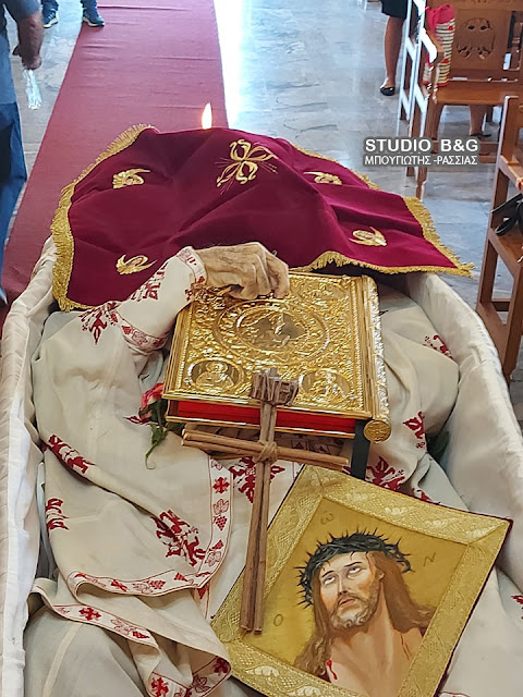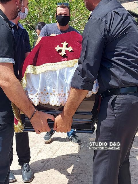 Την εξόδιο ακολουθία τέλεσε ο Μητροπολίτης Αργολίδας Νεκτάριος, ο Θεοφιλέστατος Επίσκοπος Τεγέας Θεόκλητος και πλήθος ιερέων από την Αργολίδα και την Αρκαδία.