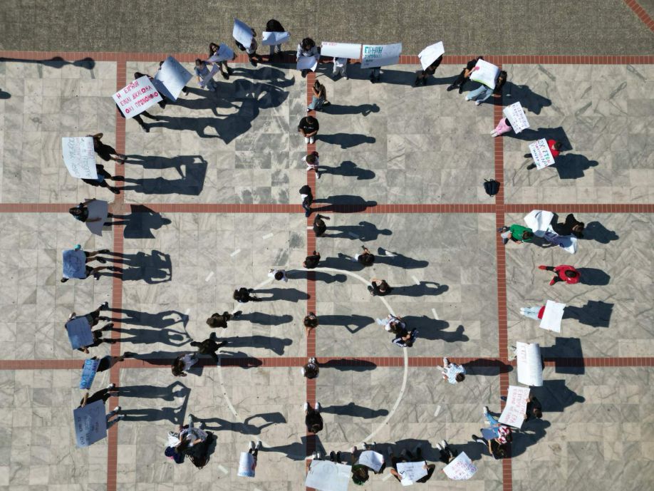 Tο σύμβολο της Ειρήνης με τα σώματά τους σχημάτισαν μαθητές των Γυμνασίων Τυρού και Αγίου Ανδρέα