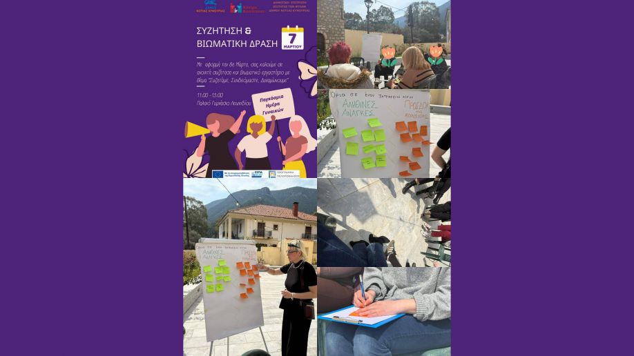 Θέμα: Συζήτηση και Βιωματικό εργαστήριο «Συζητάμε, Συνδεόμαστε, Δυναμώνουμε» με αφορμή την 8η Μάρτη - Παγκόσμια Ημέρα για τα Δικαιώματα των Γυναικών