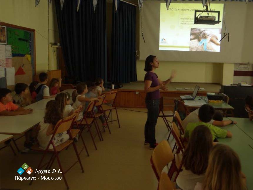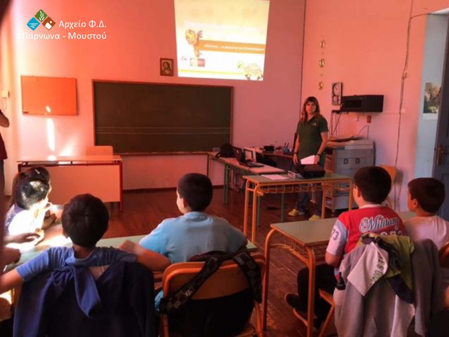 Το φετινό πρόγραμμα περιλάμβανε ενημέρωση μαθητών σε δύο Δημοτικά Σχολεία της Αρκαδίας. Στις 19 Μαΐου πραγματοποιήθηκε επίσκεψη περιβαλλοντικής ενημέρωσης στο Δημοτικό Σχολείο Τυροσαπουνακαΐικων (73 μαθητές), με το Δημοτικό Σχολείο Πελετών (7 μαθητές) να ακολουθεί στις 23 Μαΐου.