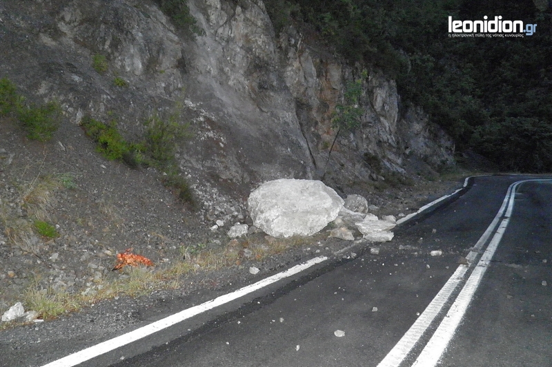 Πτώση βράχων στον δρόμο Λεωνιδίου-Κοσμά