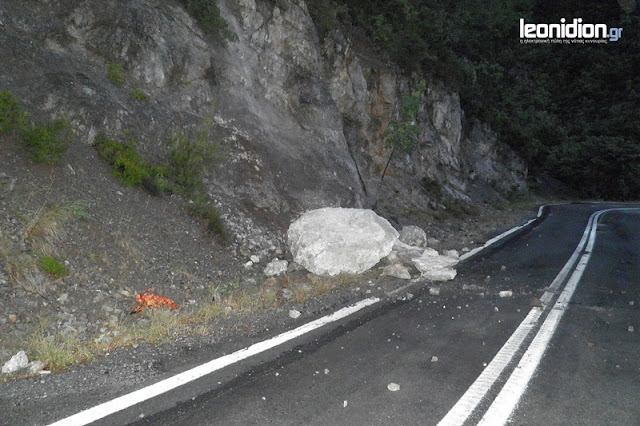 Οι χτεσινές ισχυρές βροχοπτώσεις που έπληξαν την περιοχή μας προκάλεσαν πτώση βράχων στον επαρχιακό δρόμο Λεωνιδίου-Κοσμά και συγκεκριμένα 700 περίπου μέτρα μετά την διασταύρωση για το μοναστήρι της Έλωνας.
