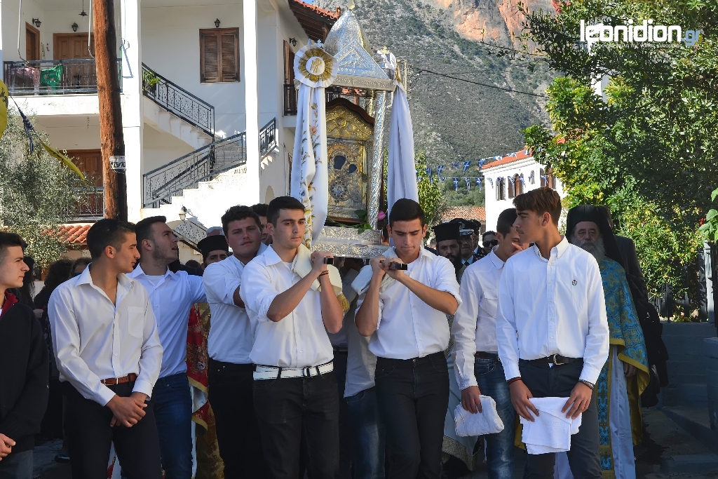 Το απόγευμα της Δευτέρας 20ης Νοεμβρίου, ο Ιερός Κλήρος, οι Αρχές, και ο ευσεβής Λαός υποδέχτηκε την Ιερή Εικόνα της Θεοτόκου στην είσοδο της πόλεως του Λεωνιδίου, που μεταφέρθηκε από την Ιερά Μονή Ελώνης.
