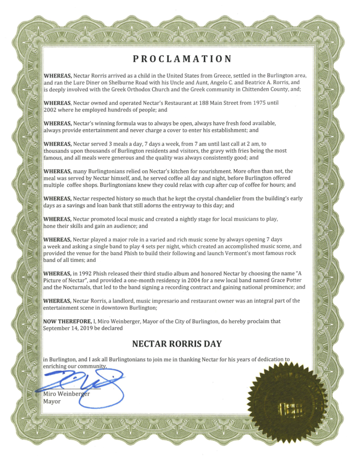 Ο Νεκτάριος Ρόρρης, ένας Κοσμίτης συμπατριώτης μας που μετανάστευσε στην Αμερική πριν από 70 περίπου χρόνια, τιμήθηκε για την πολυετή προσφορά του στην πόλη Μπέρλινγκτον της πολιτείας Βερμόντ.