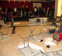 Εικόνες από την αίθουσα του Περιφερειακού Συμβουλίου, αμέσως μετά τα επεισόδια δημοσιεύει το kalimera-arkadia.gr. Βλέποντας, τις φωτογραφίες, μπορείτε εύκολα να διαπιστώσετε τις σοβαρές ζημιές που έγιναν στο Πνευματικό Κέντρο και να καταλάβετε την ένταση των επεισοδίων που είχαν ως αποτέλεσμα να διακοπεί, για δεύτερη φορά, μέσα σε λίγες ημέρες, το Περιφερειακό Συμβούλιο και να μην ληφθεί απόφαση για τη μονάδα βιοαερίου στη Μαντινεία…