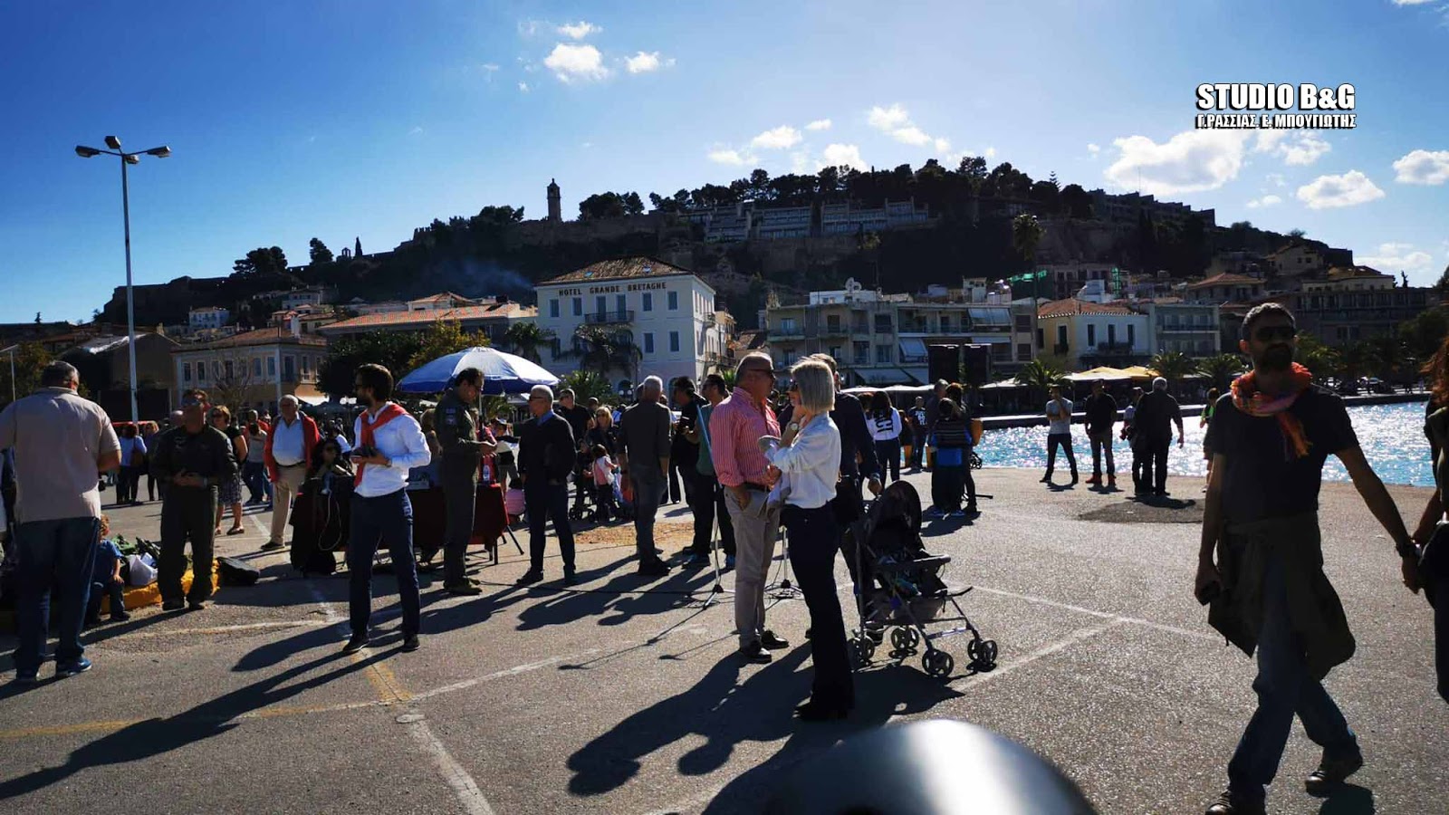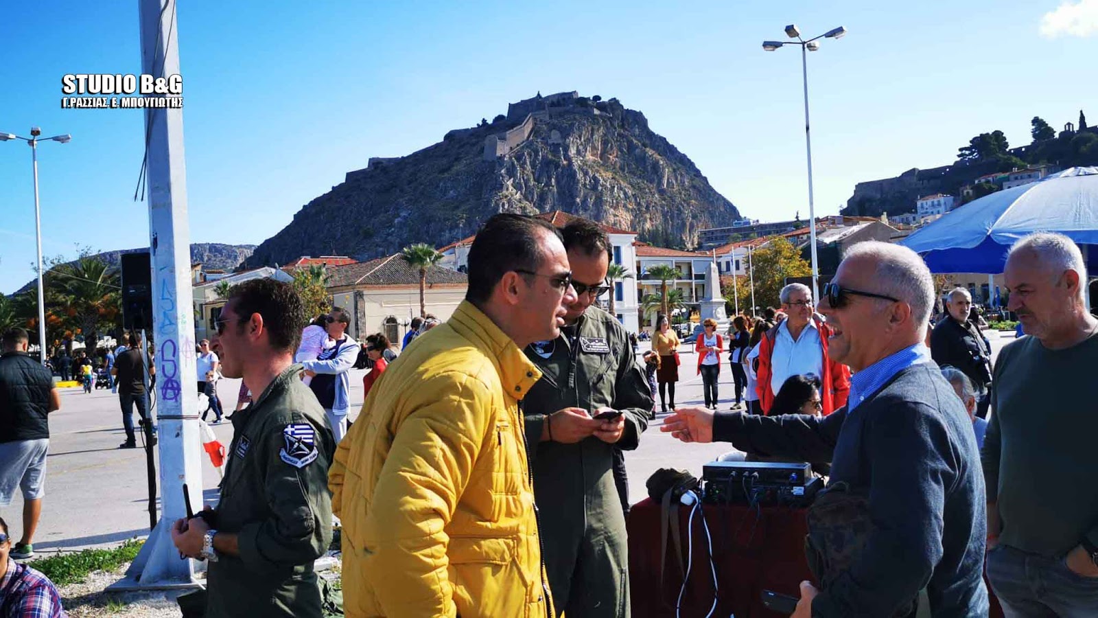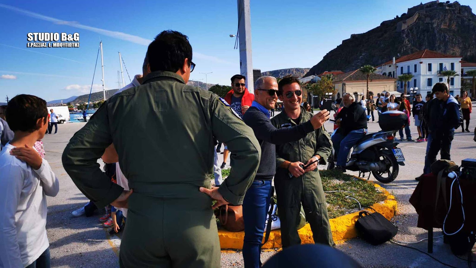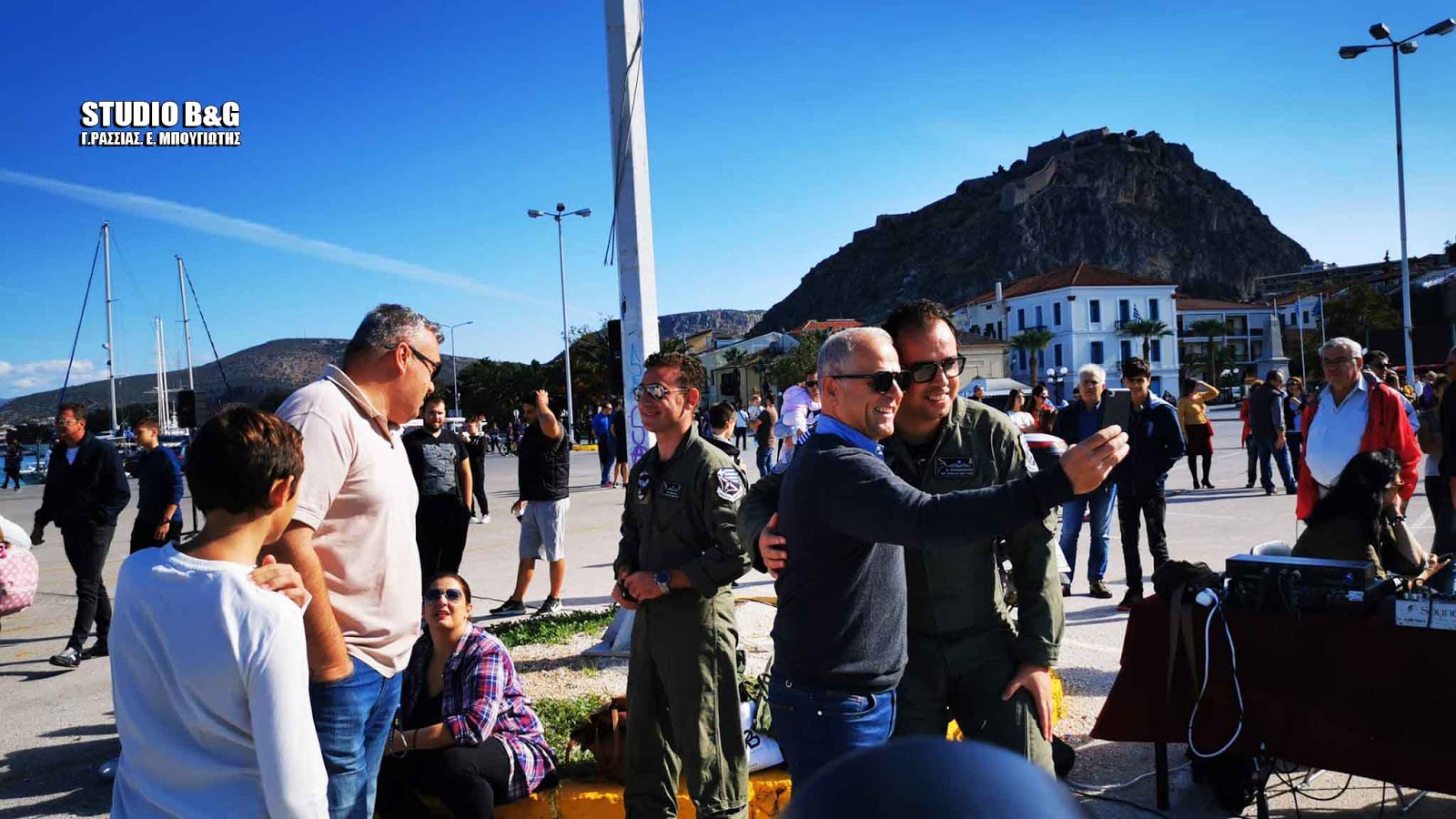 Στον χώρο του Π στο λιμάνι Ναυπλίου συγκεντρώθηκε αρκετός κόσμος για να θαυμάσει την αεροπορική επίδειξη ανάμεσά τους και ο πρώην διεθνής ποδοσφαιριστής Στράτος Αποστολάκης.