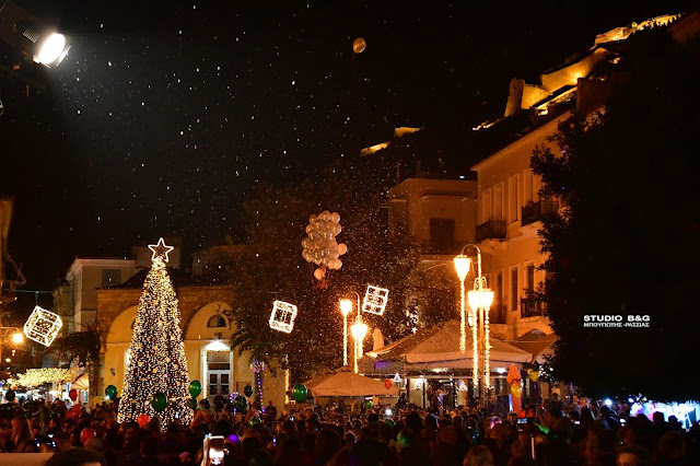 Το Σάββατο, 14 Δεκεμβρίου 2019, στις 6.30 το απόγευμα στην πλατεία Συντάγματος, ο Δήμαρχος Ναυπλιέων Δημήτρης Κωστούρος έδωσε το έναυσμα για να ανάψει το Χριστουγεννιάτικο δέντρο στο Ναύπλιο.