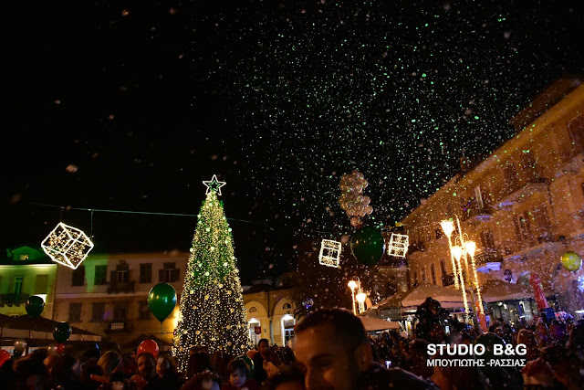Φωταγωγήθηκε το Χριστουγεννιάτικο δένδρο στο Ναύπλιο (εικόνες)