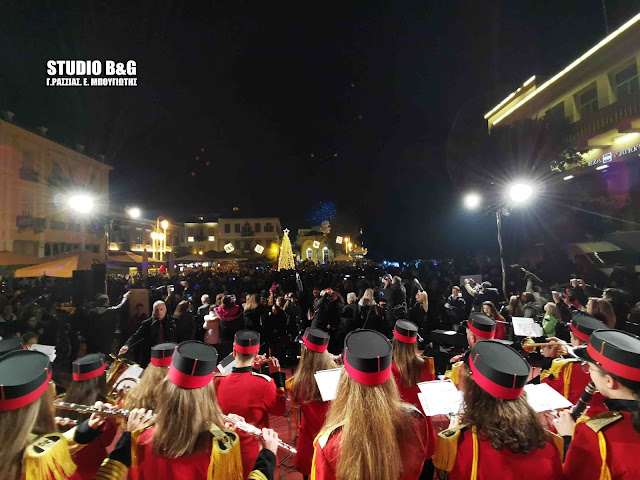 Με την συμμετοχή κατά την έναρξη των εορτασμών της Φιλαρμονικής του ΔΟΠΠΑΤ, της παιδικής χορωδία «Temperamento», της χορωδίας του φροντιστηρίου ξένων γλωσσών VD Χρονοπούλου, του Αθλητικού Προοδευτικό Συλλόγου «Χοροκίνηση», τη χορωδία του 1ου Γυμνασίου Ναυπλίου και με το Κουαρτέτο εγχόρδων Crescendo με την τραγουδίστρια Ιωάννα Εμμανουήλ την μεγάλη μας ερμηνεύτρια Πένυς Ξενάκη σε τραγούδια του Γιάννη Σπανού άναψε το Χριστουγεννιάτικο δέντρο στο Ναύπλιο
