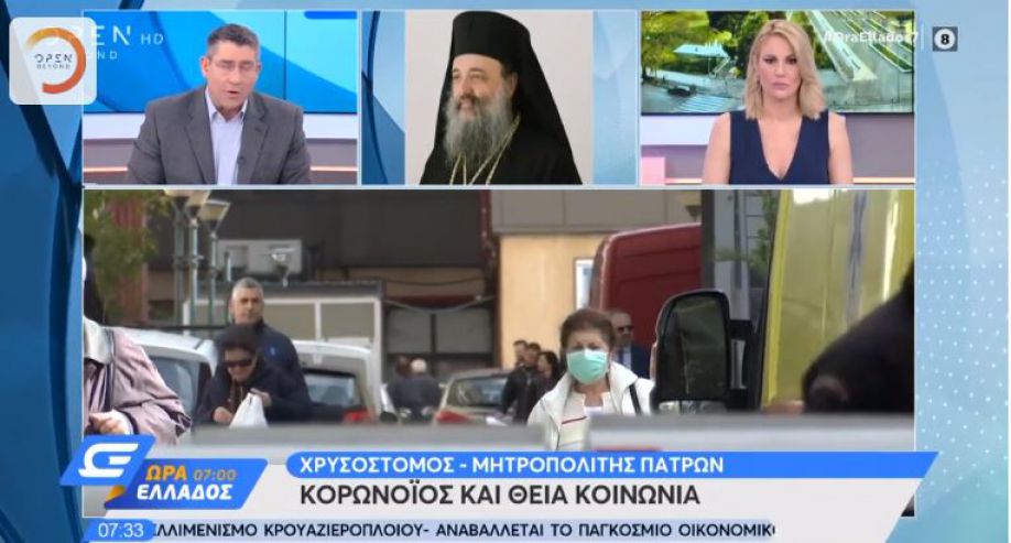 Σε εκπομπή του Open φιλοξενήθηκε τηλεφωνικά ο Αρκάς Μητροπολίτης Πατρών κ. Χρυσόστομος, ο οποίος μίλησε για την ανησυχία που υπάρχει σχετικά με τον κορωνοϊό.