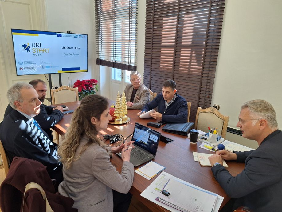 Συνάντηση εργασίας πραγματοποιήθηκε με τη συμμετοχή του Περιφερειάρχη Πελοποννήσου Δημήτρη Πτωχού, του Πρύτανη του Πανεπιστημίου Πελοποννήσου Καθηγητή Αθανάσιου Κατσή, του Αντιπεριφερειάρχη Επιχειρηματικότητας Σωτήρη Μουρίκη, του Προϊσταμένου της ΕΥΔ Αντώνη Ψαράκη και της εταιρείας υλοποίησης με αντικείμενο τον σχεδιασμό των επόμενων δράσεων του προγράμματος UniStart Hubs.