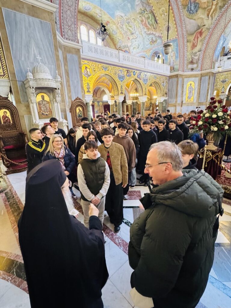 Ὁ Σεβασμιώτατος ἐξενάγησε πνευματικὰ τὰ παιδιὰ στὰ Ἱερὰ Προσκυνήματα καὶ σεβάσματα τῶν Πατρῶν, ἀλλὰ καὶ τῆς Ὀρθοδοξίας ὁλόκληρης, τοὺς μίλησε γιὰ τὸν ἈπόστολονἈνδρέα καὶ τὴν σχέση του μὲ τὴν Πάτρα καὶ ἀφοῦ προσκύνησαν μὲ εὐλάβεια τὴν πανσεβάσμια Κάρα καὶ τὸν Σταυρὸ τοῦ Μαρτυρίου τοῦ Ἀποστόλου Ἀνδρέου, τοὺς προσέφερε ὡς εὐλογία ἀπὸ μία εἰκόνα τοῦ Ἀποστόλου Ἀνδρέου. Ἐπίσης ὁ Σεβασμιώτατος προσέφερε μίαν εἰκόνα τῆς Παναγίας Θεοτόκου γιὰ τὸ 4ο Λύκειο Τριπόλεως, ὥστε νὰ ὑπάρχη ἐκεῖ ὡς εὐλογία τῶν Μαθητῶν καὶ Καθηγητῶν.